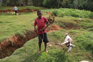 Warum Ziegen? Eine Ziege zu besitzen ist in Kenia von großem Wert. Ziegen sind relativ anspruchslose Tiere. Sie finden in der oft kargen Vegetation vor Ort genug zu fressen, wie z.B. Laub von Büschen. Die Ziegenmilch ist sehr nahrhaft und durch Zucht und Verkauf der Tiere kann die Familie etwas Einkommen erwirtschaften. Nur das erstgeborene Kitz wird weitergegeben, alle weiteren Ziegenkitze bleiben in der Familie.